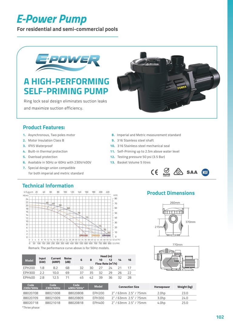 5- مناسب للمسابح الخاصة والتجارية بفضل أدائه العالي